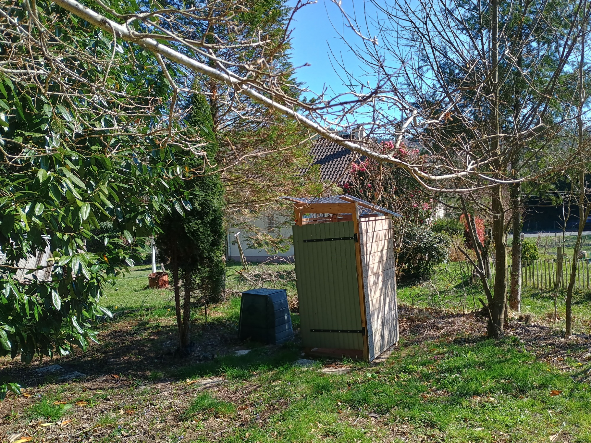 Nous avons aussi mis en place un composteur à proximité des toilettes sèches qui sont à l'orée du bois.